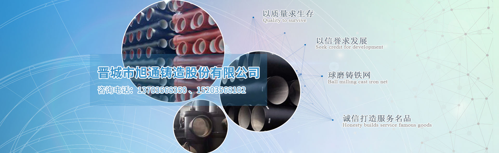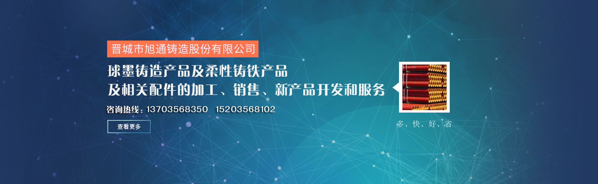 晉城市旭通鑄造股份有限公司是一家致力于球墨鑄造產品及柔性鑄鐵產品及相關配件的加工、銷售、新產品開發和服務的網絡平臺,以“多、快、好、省”為服務宗旨,多種選擇、快速定位、優質產品、省錢省力,為客戶提供精準服務......